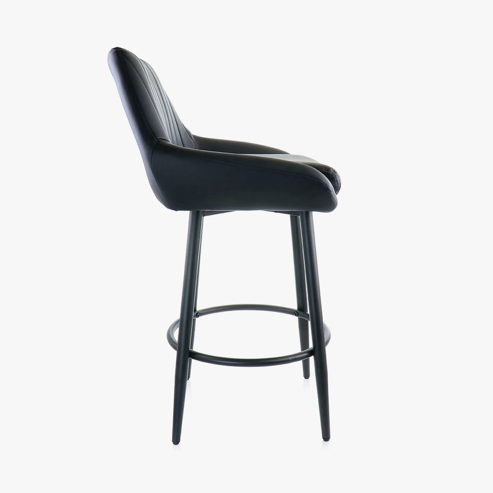 Elama Modern Faux Leather Tufted Bar Stool in Black with Chrome Base Adjustable Height